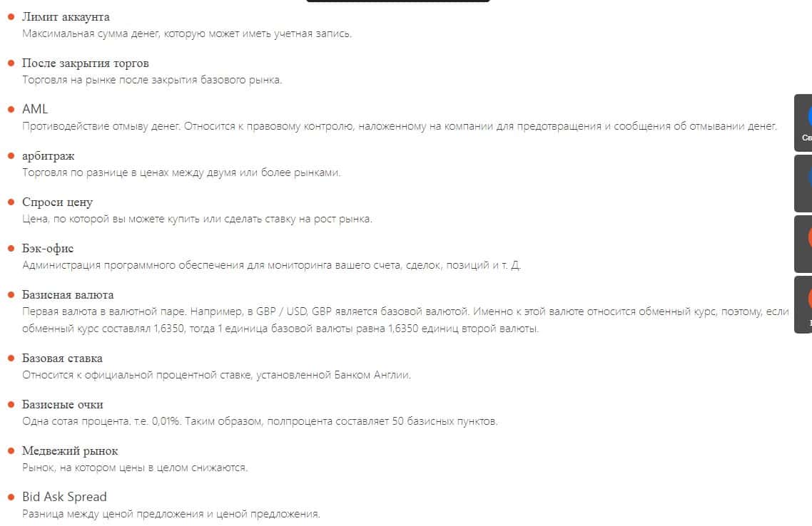 Спрашивается зачем делать такой глупый раздел, лучше ответьте сами своим клиентам. Но компания GKFX таким образом отводит подозрение у ещё ничего не понимающих новичков. Таким образом когда у клиента возникает вопрос о каких-то словах, лохотрон ГКФХ переводит взгляд клиента на данный фейковый раздел.