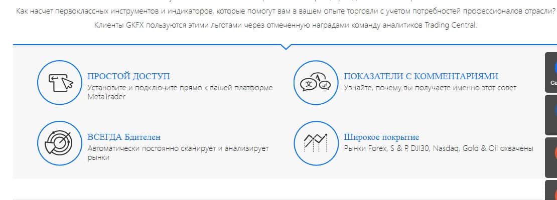 В разделе торговых инструментов администрация напоминает о своих шикарных возможностях инвестировать в торговые инструменты и легко получать прибыль с проверенным брокером. Главное заставить верить доверчивых клиентов в то, что внедрение их в деятельность подвальной кухни GKFX позволяет вести крупные и честные торги.
