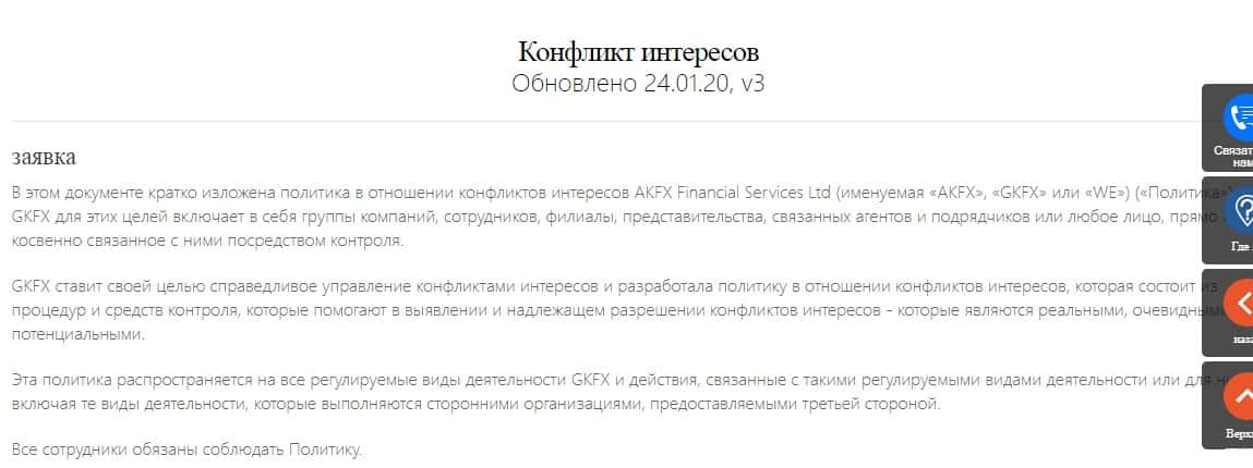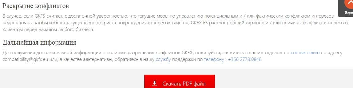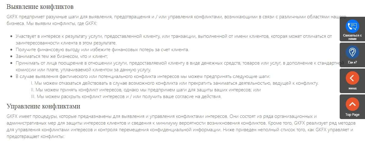 Далее, на изображении, расположенном ниже, вы можете увидеть продолжение скандального документа политики конфликтов интересов, благодаря которому подвальная кухня GKFX закидывает удочки для привлечения наивной клиентуры, которую в последствии оставят без гроша.