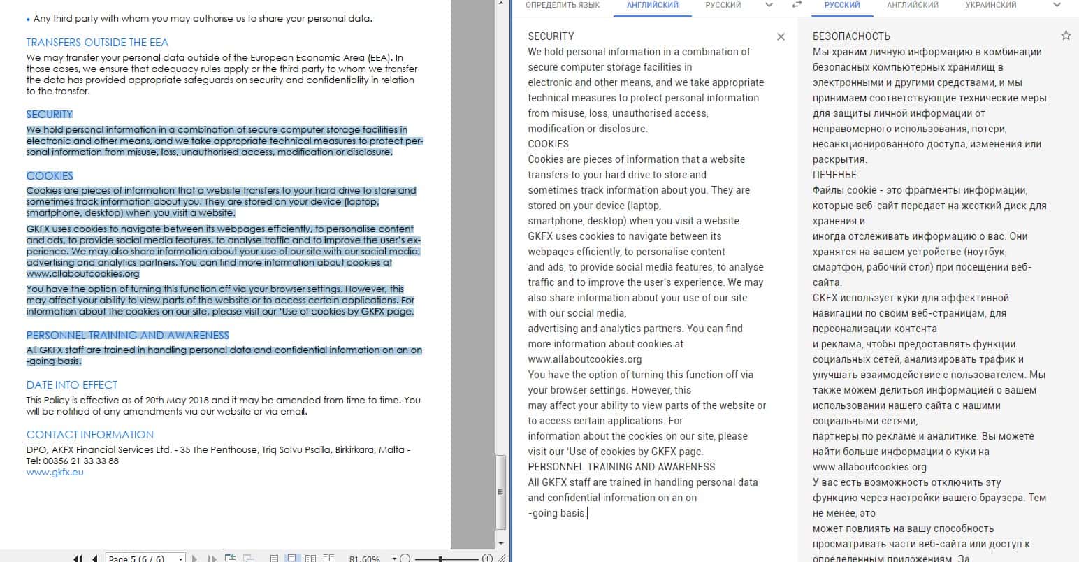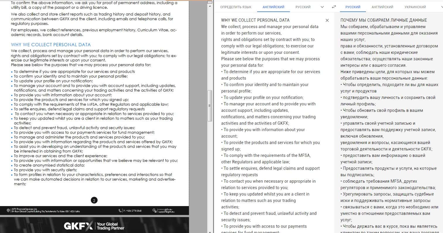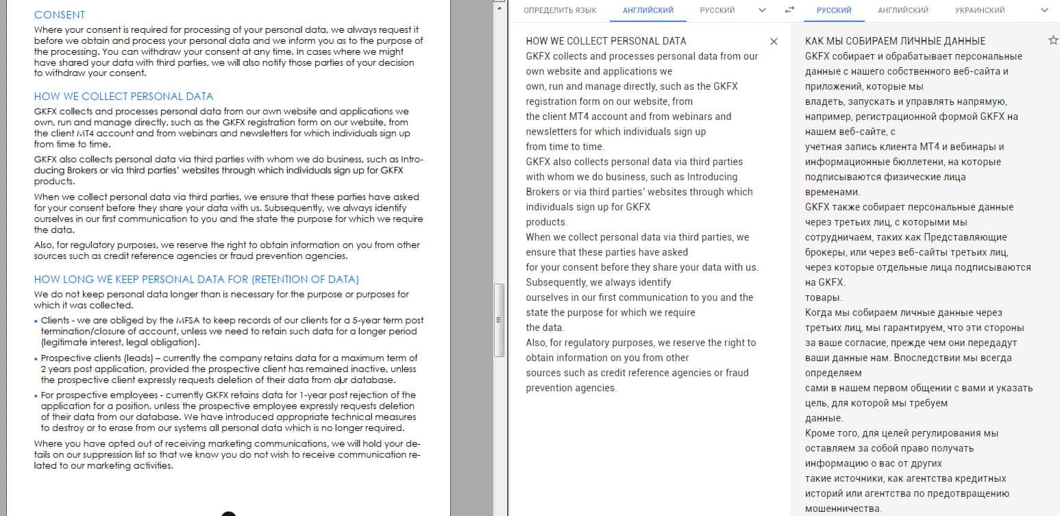 Данный документ у аферистов ГКФХ начинается довольно стандартно и предсказуемо, полный набор сплошной воды и никакой конкретики. Постоянное повторение о том, что вкладчик аферистов GKFX обязан сливать всю информацию о себе в пользу аферистов, что распоряжаться данными клиента они могут как угодно.