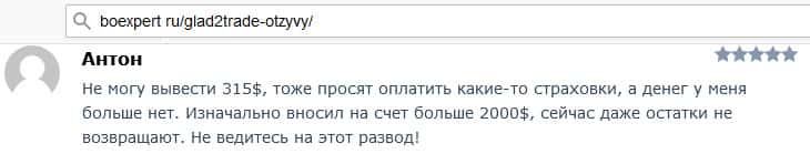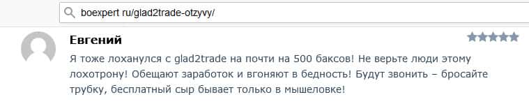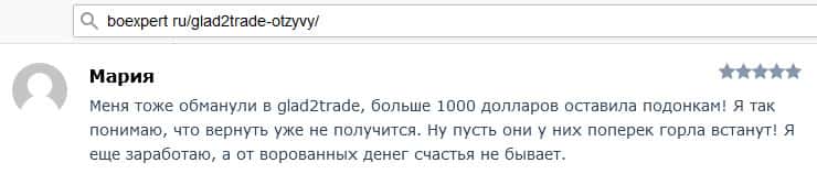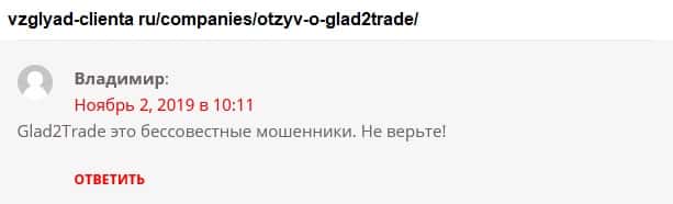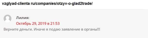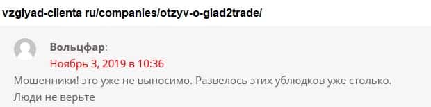 Люди прямо говорят, что Глад 2 Трейд - мошенники
