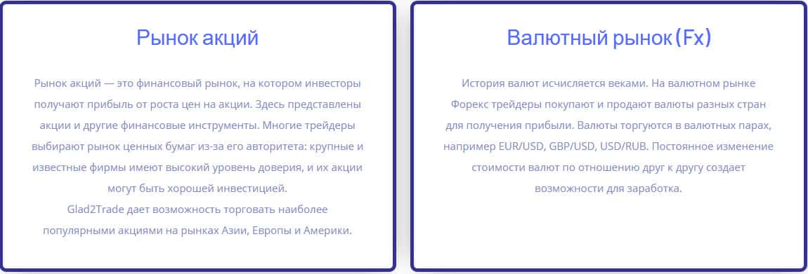 У Glad2trade io нет лицензии от финансового регулятора - ЦБ РФ и других стран СНГ. На постсоветском пространстве они работают незаконно и вместо лицензии размещают разные сказочные рассказы о себе.