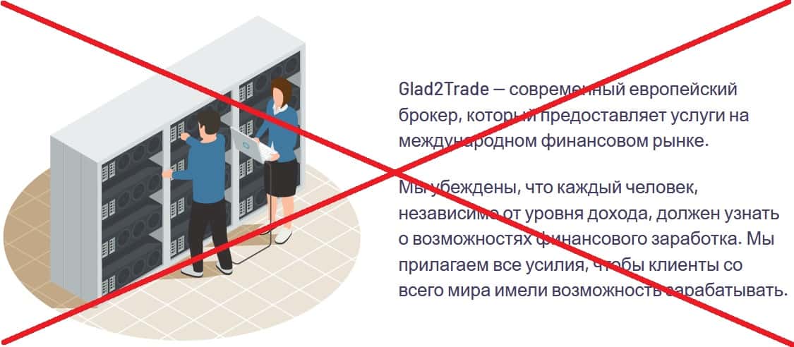 Glad2trade io - очередной брокер-однодневка, разводящий своих клиентов депозиты. Естественно, назад деньги жулики выводить вам уже не дадут. Данный лохотрон работает всего 7 месяцев. Эта "личинка" берет свое начало от других разводняков, но схема работы всегда и везде одинаковы - и это скам.
