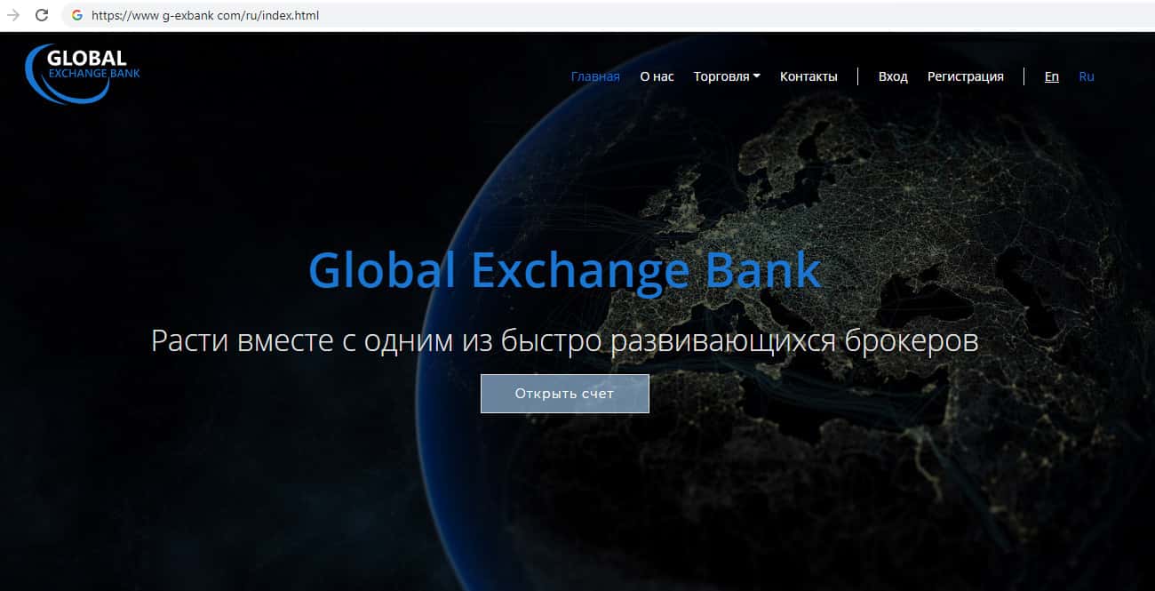 Обзор официального сайта мошеннической организации Глобал Эксчэндж Банк