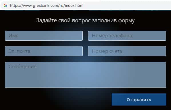 Так же на своем сайте шуллера Глобал Эксчэндж Банк предлагают бланк обратной связи на сайте. После того, как Вы заполните данный бланк, мошенники GlobalExchangeBank от Вас просто так не отстанут, своими звонками навязывая мнение о своей якобы брокерской компании !!!