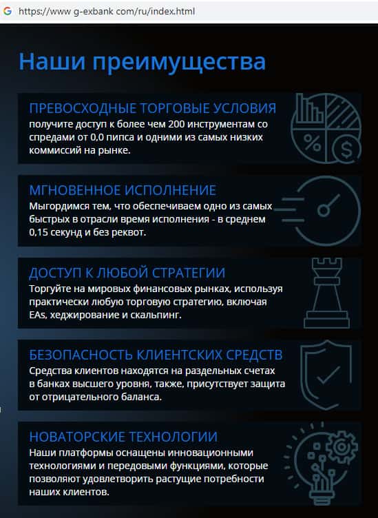 То, что аферисты Глобал Эксчэндж Банк считают преимуществами своей компании