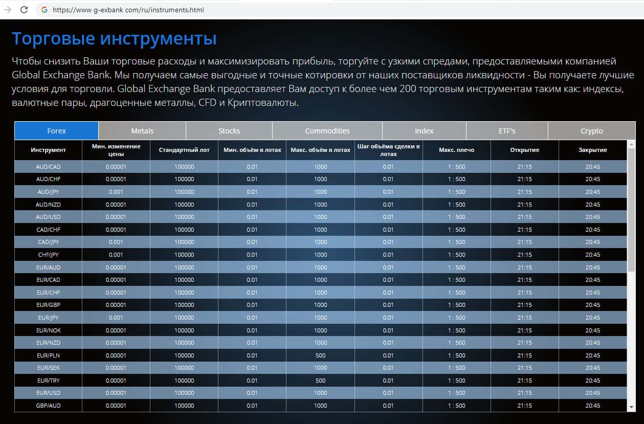 - Какие торговые инструменты предлагают шуллера GlobalExchangeBank пользователям своего сайта?