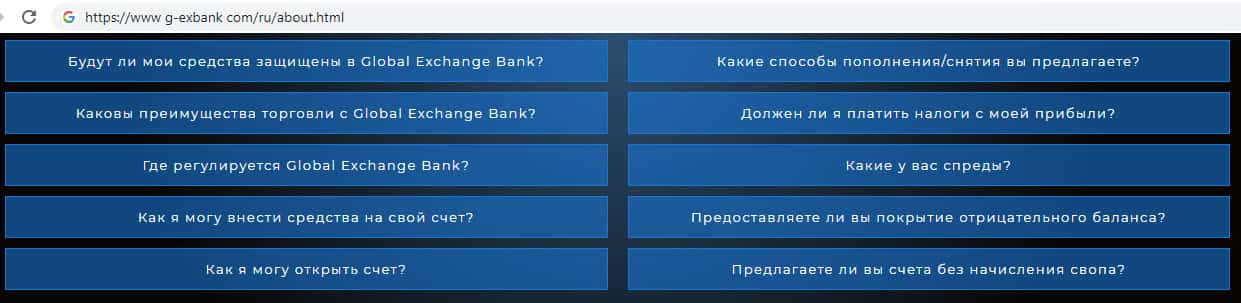 Ответы на якобы часто задаваемые вопросы пользователями сайта конторы GlobalExchangeBank