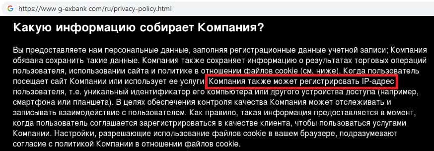 Политика конфиденциальности брокерской скам-организации GlobalExchangeBank