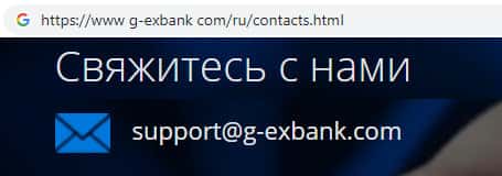 Жульническая контора Глобал Эксчэндж Банк для связи на своем официальном сайте не указала номера контактного телефона своей организации, зато аферисты указывают адрес электронной почты своей конторы, который указан ниже: