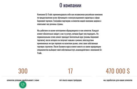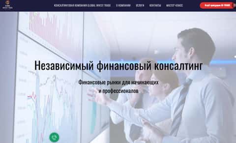 Начинается сайт у мошенников Global Invest Trade с довольно ожидаемой шапки сайта, которая содержит в себе мотивацию торговли форекс с помощью аферистов Глобал Инвест Трейд. Однако остается под вопросом факт того, кем именно являются жулики Global Invest Trade, брокером или консалтинговой конторой, ведь выманивать деньги будут под предлогом торговли форекс.
