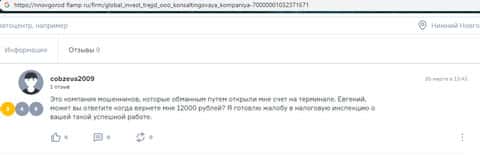 Еще один негативный отзыв в сторону лохотрона Global Invest Trade с портала flamp ru