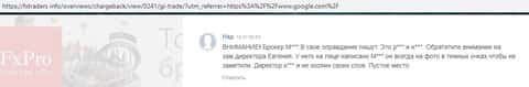 На изображении, расположенном ниже, вы можете увидеть очередной негативный отзыв в сторону аферистов Глобал Инвест Трейд, которые опрокинули на деньги своего очередного клиента и с помощью своего менеджера-мошенника нагло слили наивному пользователю счет, после чего дали заднюю и перестали отвечать на все гневные обращения обманутого клиента.