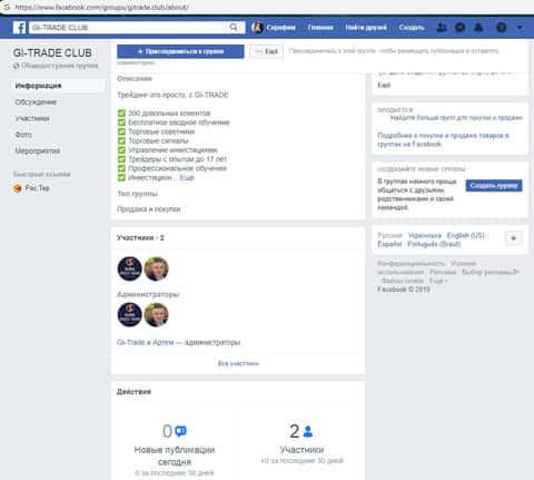 Дабы соответствовать всем современным трендам аферисты Глобал Инвест Трейд обзавелись страницами в различных социальных сетях, одной из которых стал Facebook. Данная группа мошенников содержит в себе только два подписчика и не имеет никаких публикаций. Ниже вы можете увидеть страницу аферистов Global Invest Trade в Фейсбук.