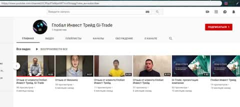 Имеется у жуликов Global Invest Trade страница и в социальной сети YouTube, где мошенники Глобал Инвест Трейд размещают различные купленные видео-отзывы и другую рекламу их подвальной конторы по разводу наивных пользователей сети. На изображении, расположенном ниже, вы можете увидеть страницу аферистов Global Invest Trade в Ютубе.