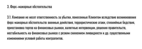 Не успев начаться клиентское соглашение мошенников Global Invest Trade уже заканчивается. И заканчивается на том, что лохотрон Глобал Инвест Трейд не несет никакой ответственности в случае форс-мажорных обстоятельств. На изображении, расположенном ниже, вы можете увидеть окончание условий сотрудничества с шулерами Глобал Инвест Трейд.