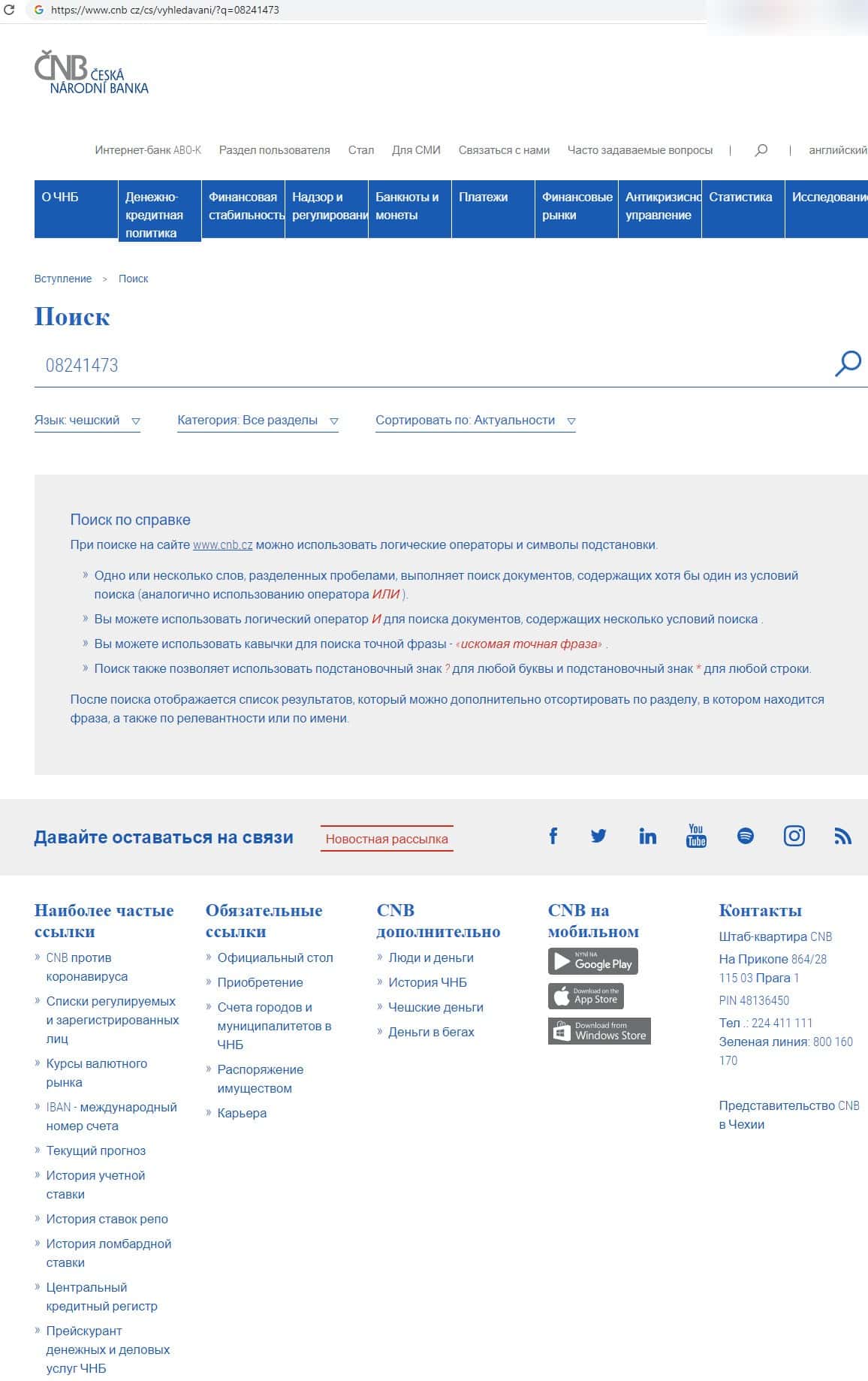 cnb cz - официальная интернет-страница Чешского национального банка
