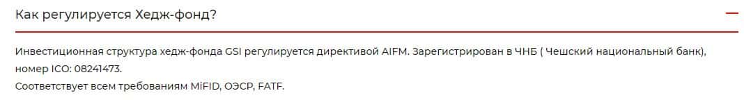 Согласно данным с сервиса проходимцев GlobalSecureInvest, то они осуществляют свою деятельность благодаря регистрации в Чешском национальном банке, но нет доказательств.