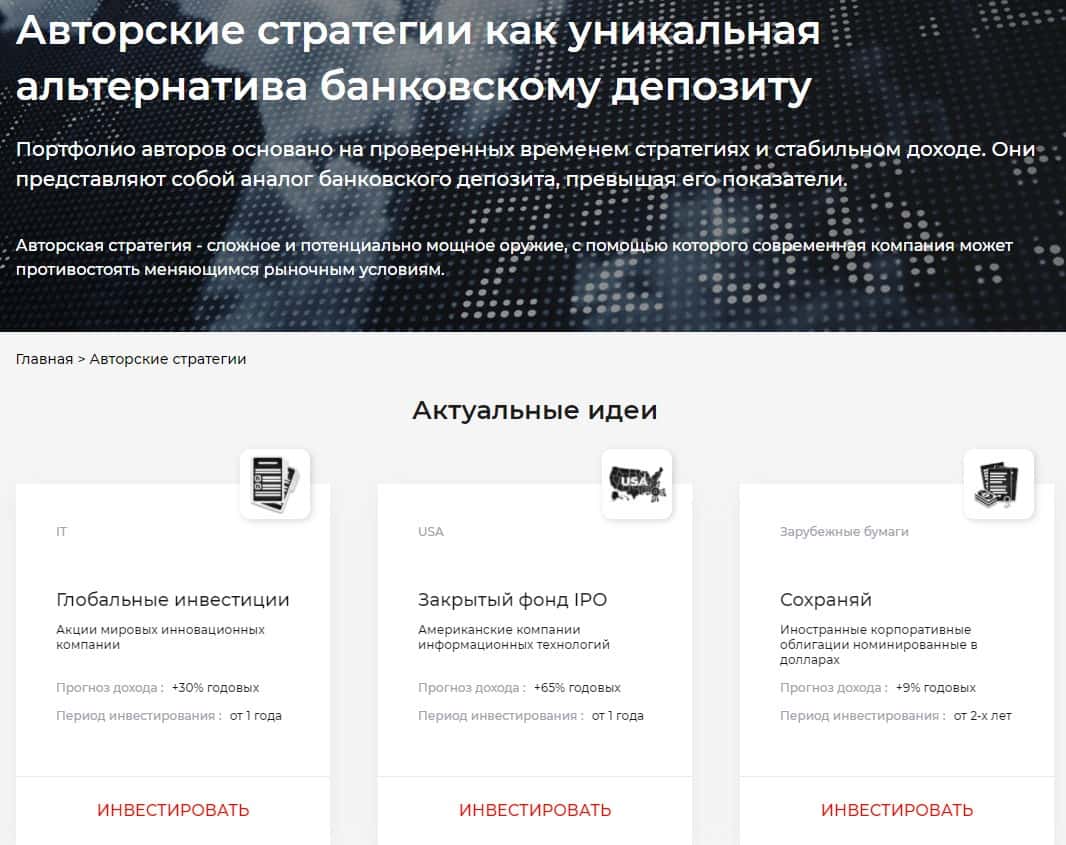 "Авторские стратегии" у ворья GlobalSecureInvest подразделяются еще на три вида: глобальные инвестиции, закрытый фонд IPO и зарубежные бумаги. В общем, разводняк.