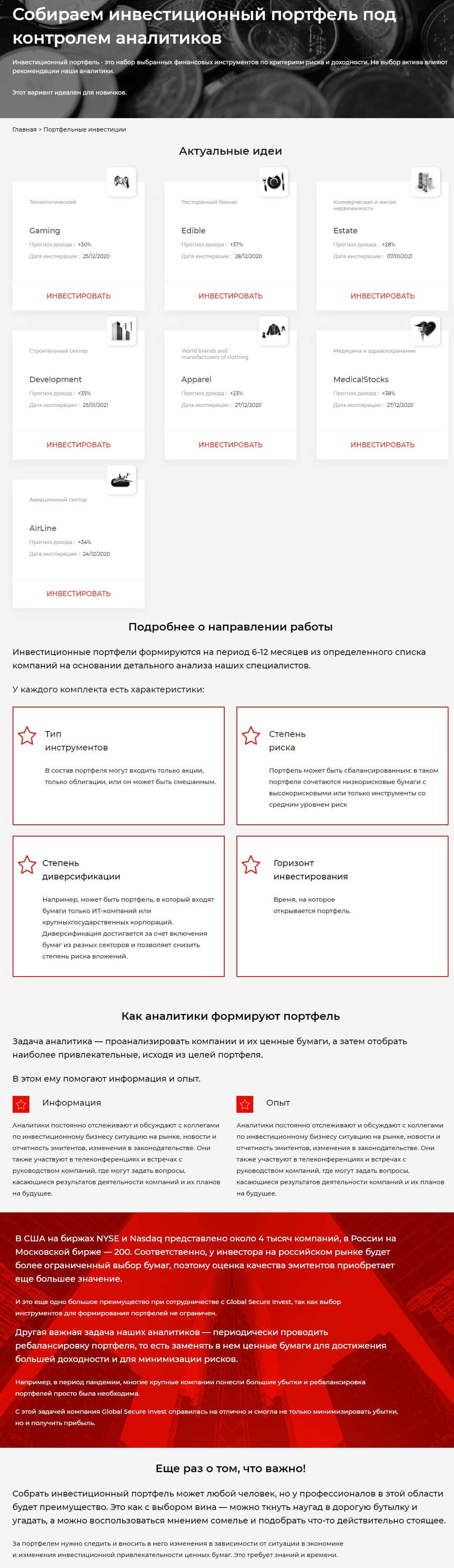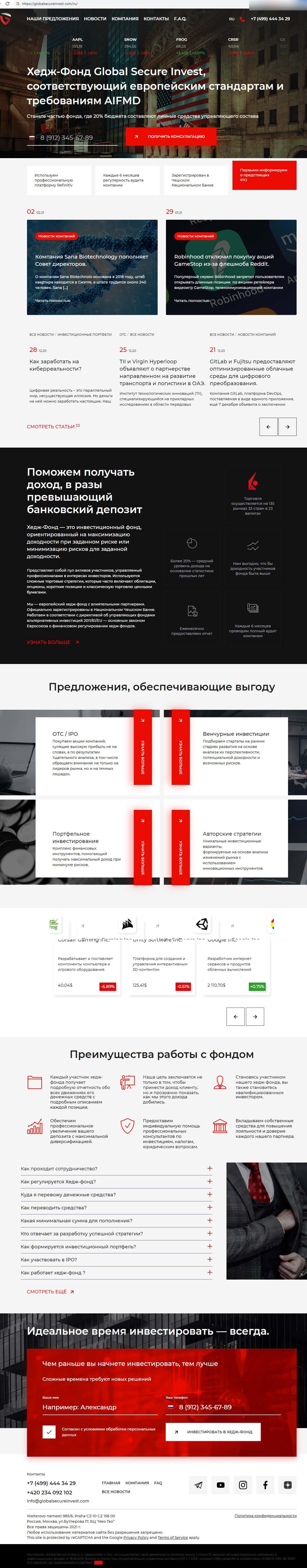 Главная интернет-страница махинаторского хедж-фонда Глобал Секьюре Инвест