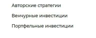 Если клиента все же разведут на открытие аккаунта у жулья GlobalSecureInvest и вложения денег, то ему предложат одну из трех инвестиций - авторские, венчурные или портфельные.