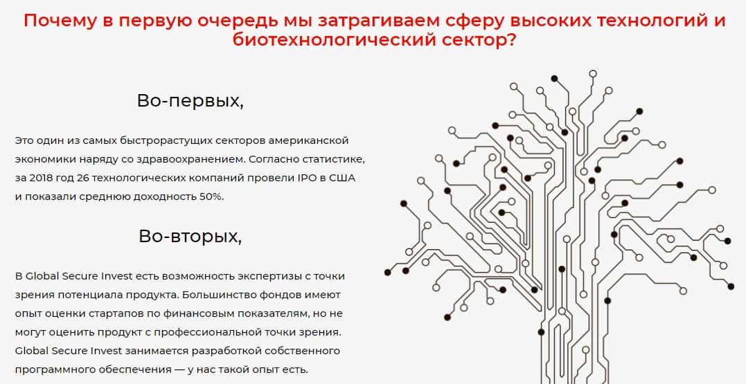 Жулики Глобал Секьюре Инвест называют основными преимуществами работы с ними: быстрый рост этого сектора в экономике и экспертиза с точки зрения потенциала продукта.