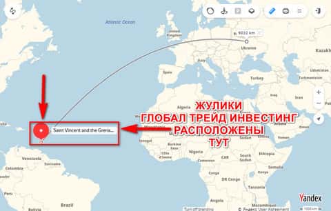 Так как лохотрон GlobalTradeInvesting решил заниматься мошеннической деятельностью, то и место регистрации он выбрал в оффшорной зоне. Далее мы предоставим адрес регистрации их конторы, дабы вы смогли наведать их, если кинут на очень крупную сумму: Suite 305, Griffith Corporate Centre, P.O. Box 1510, Beachmont, Kingstown, St. Vincent and The Grenadines.