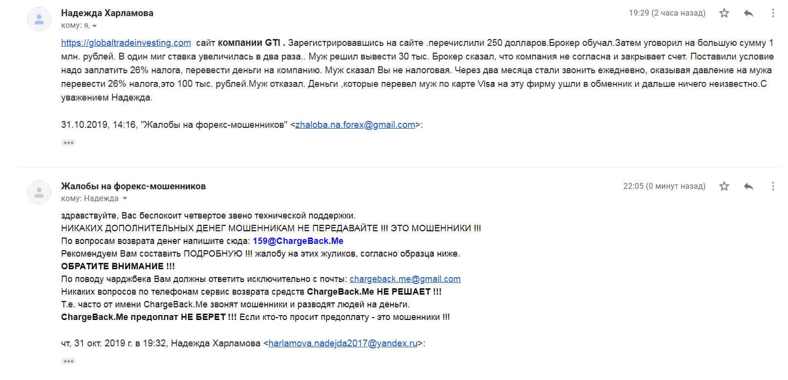 - Жалоба на GlobalTradeInvesting от очередной пострадавшей клиентки