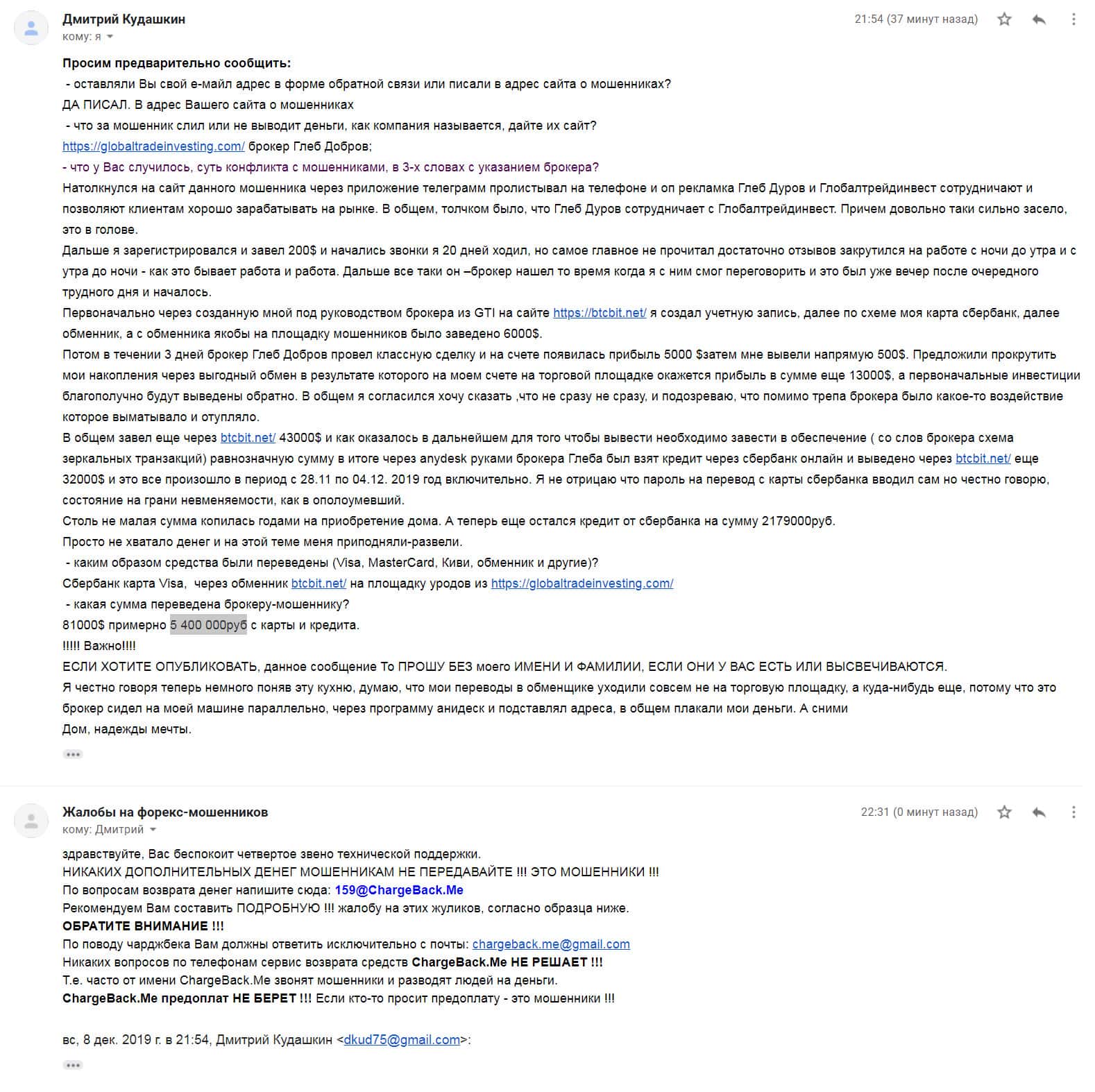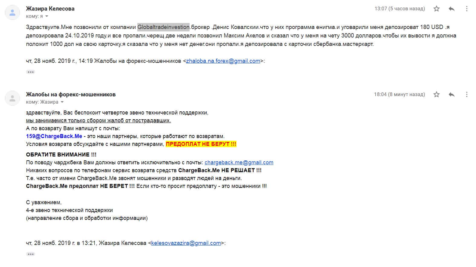 - Жалоба на кухню GlobalTradeInvesting от очередного облапошенного онлайн-пользователя