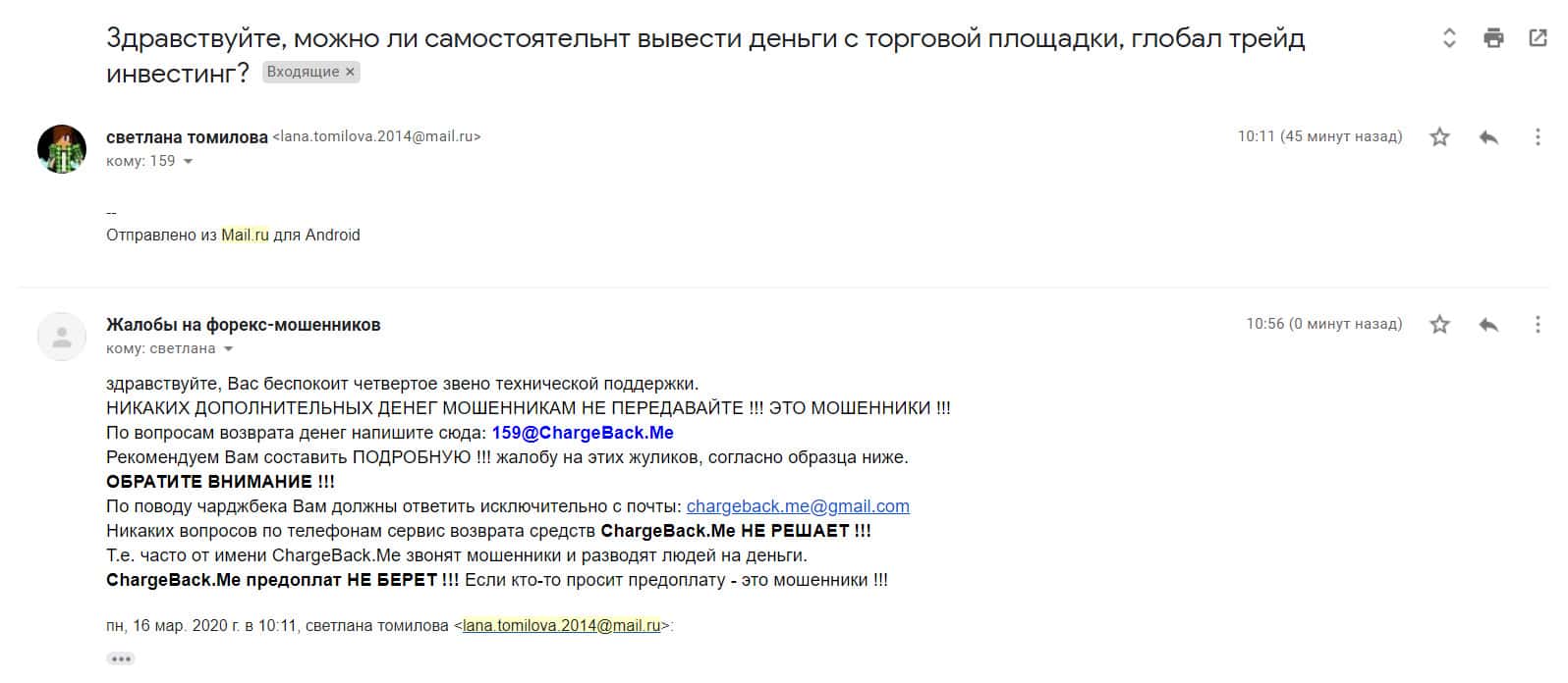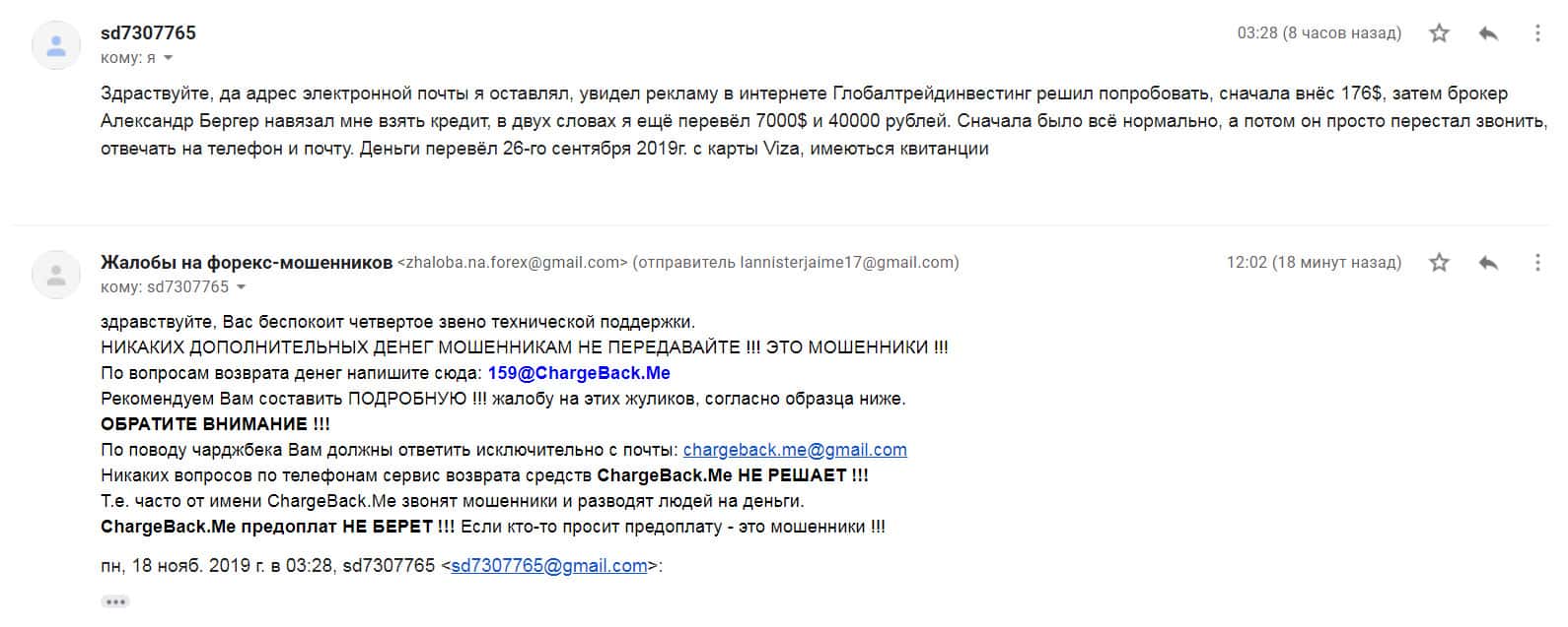 - Аферисты ГлобалТрейдИнвестинг кинули клиента как минимум на 7000$