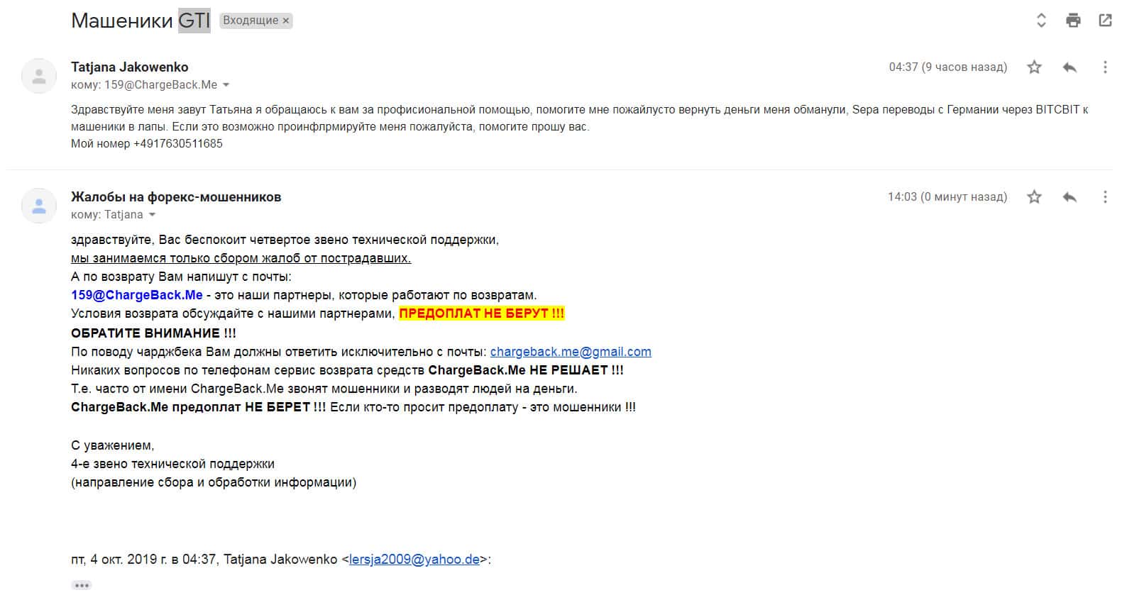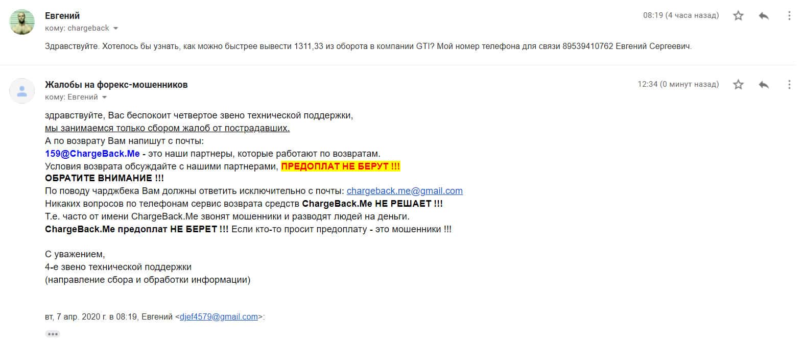 Кухня Глобал Трейд Инвестинг, используя свои мошеннические схемы, смогла вытащить из кармана человека сумму в размере 200 долларов и он не знает теперь что ему делать. Сумма вроде бы и не большая, но все же он не захотел кормить жуликов. По этому обратился в организацию ChargeBack.Me чтобы те помогли.