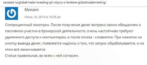 Отзыв о стопроцентном лохотроне Глобал Трейд Инвестинг