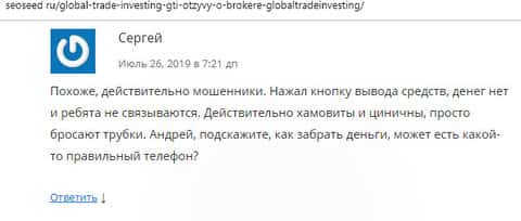 Жулики GlobalTradeInvesting кинули очередного клиента
