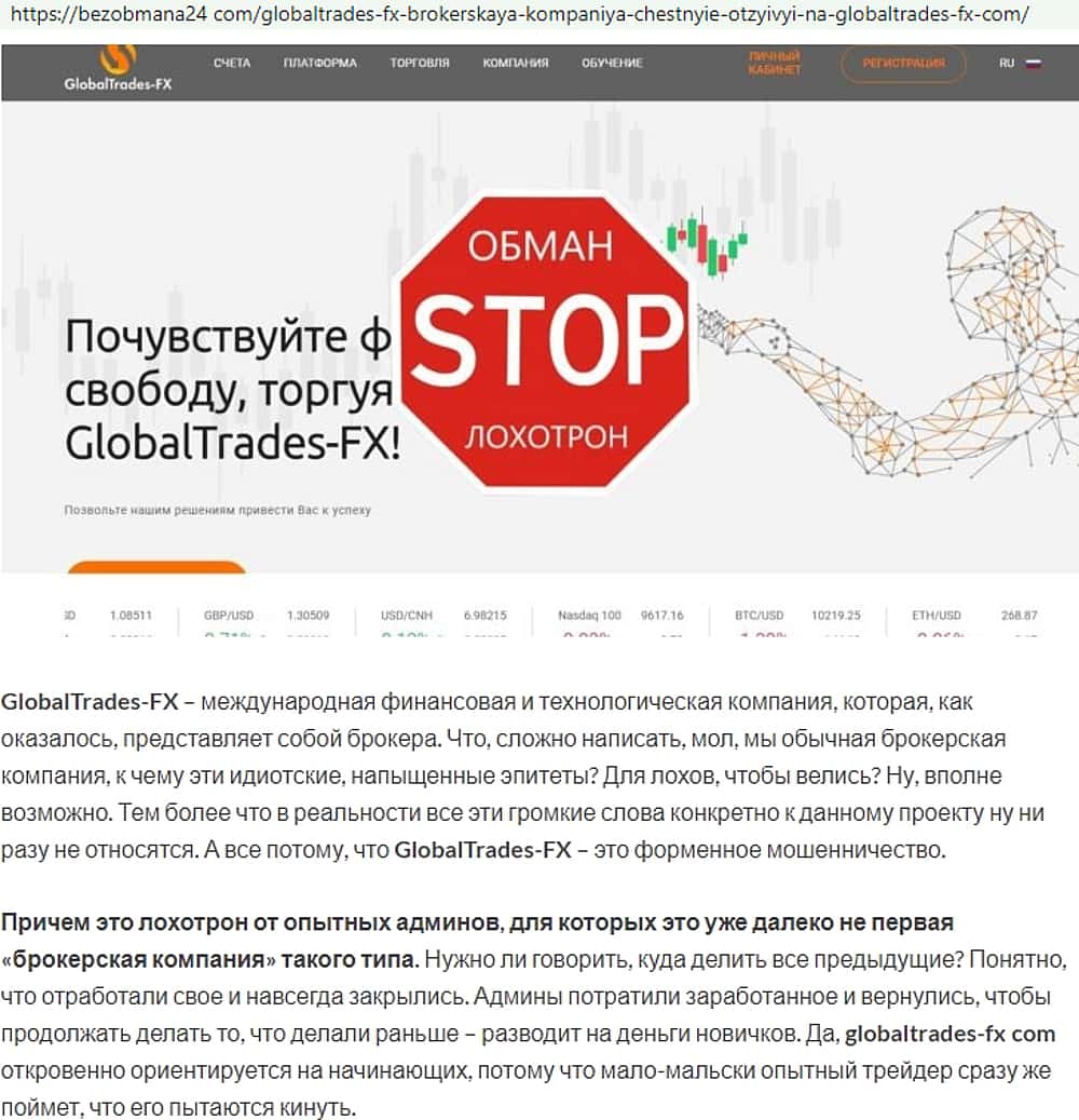 globaltrades-fx com - официальный сайт-разводняк жулья Глобал Трейдес ФХ