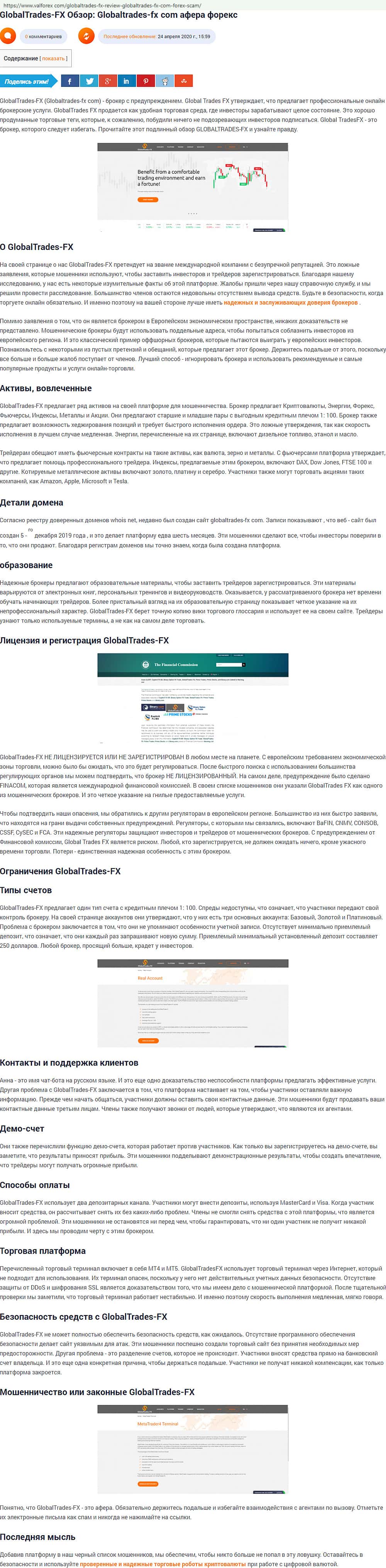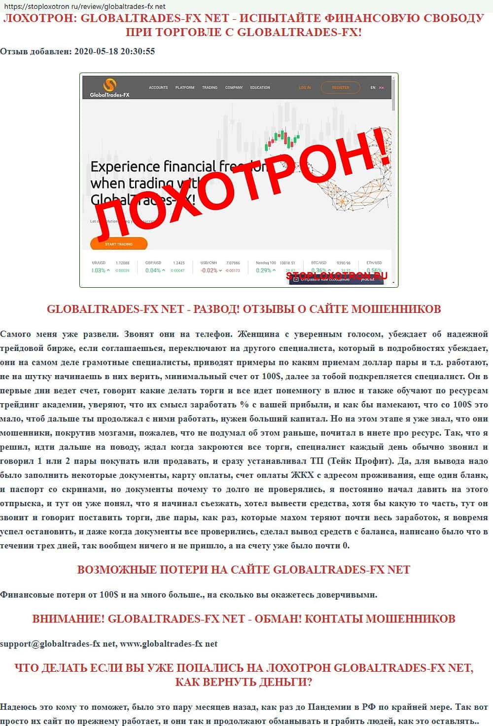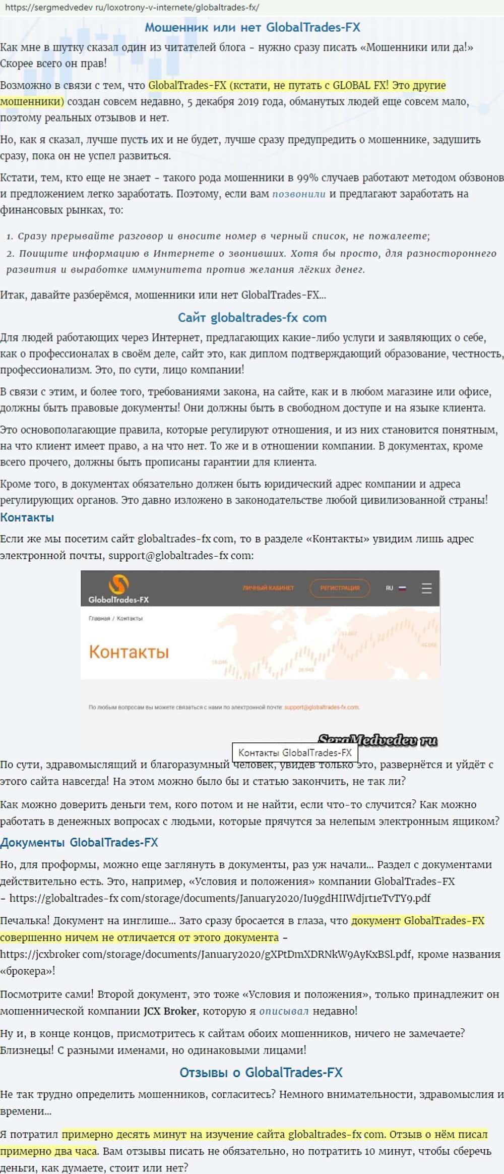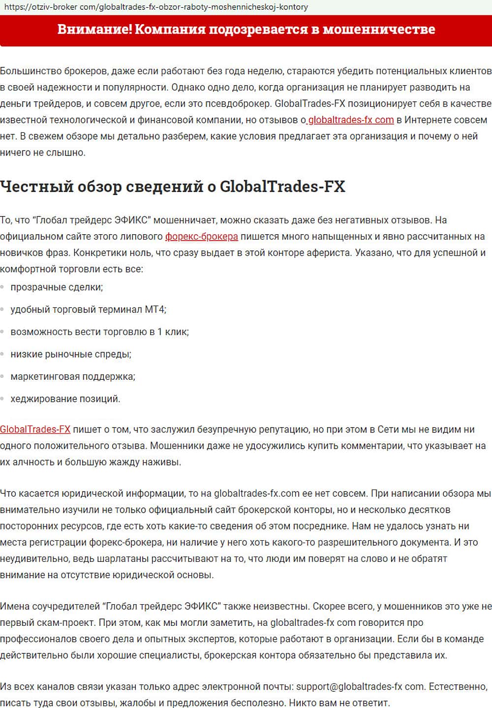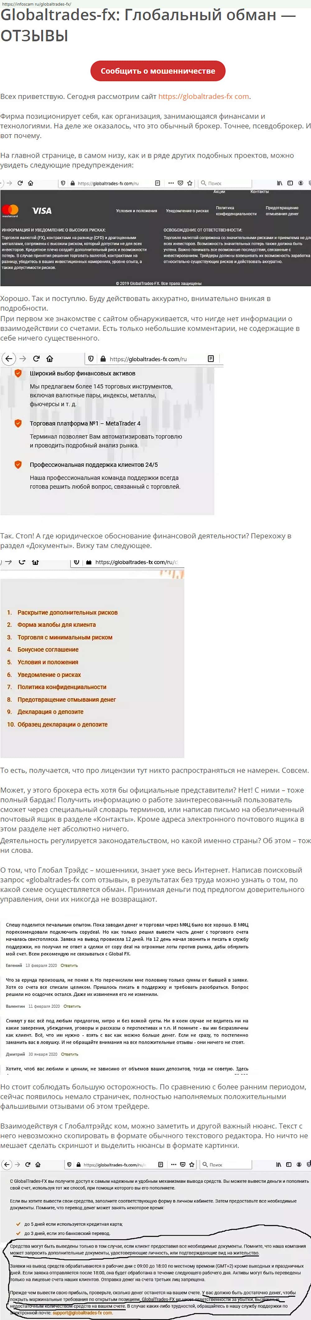 Подробное описание мошеннической конторки Глобал Трейдес ФХ предоставил своим читателям сайт infoscam ru, Весь сайт катал - это бомба замедленного действия.