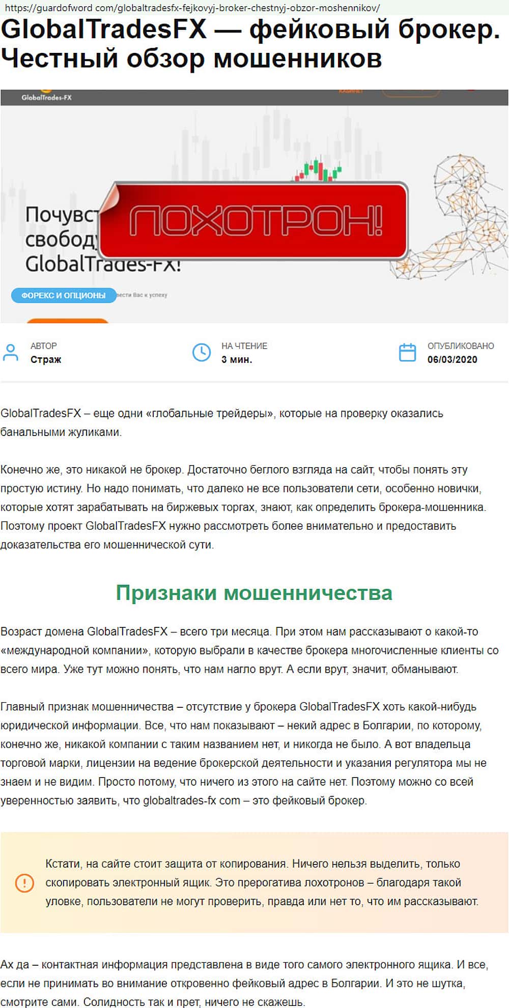 Автор, редактор и источники информации статьи о ворюгах Глобал Трейдес ФХ