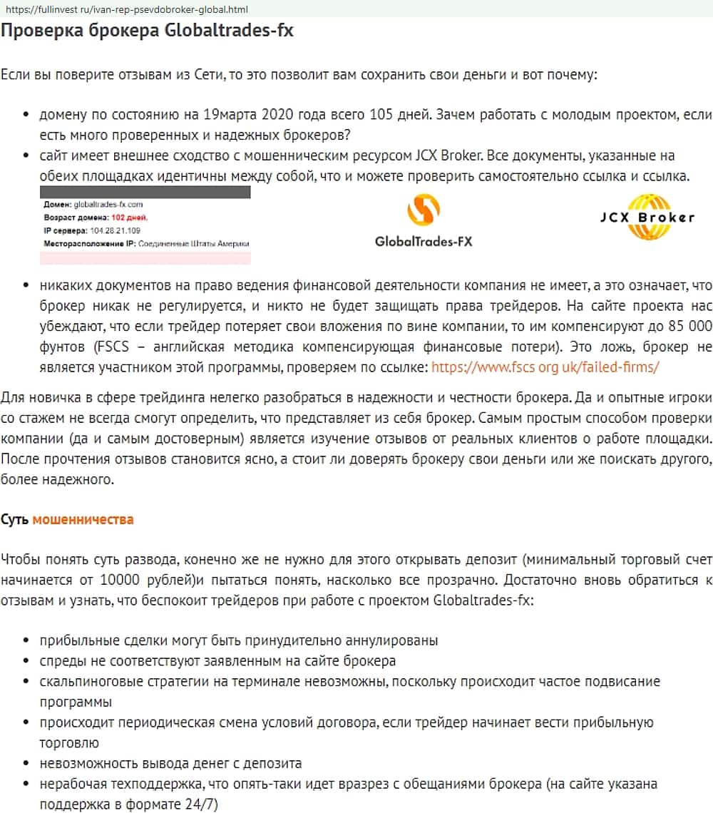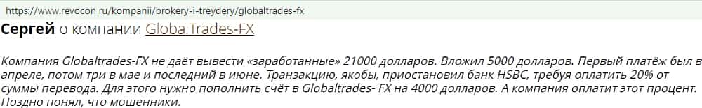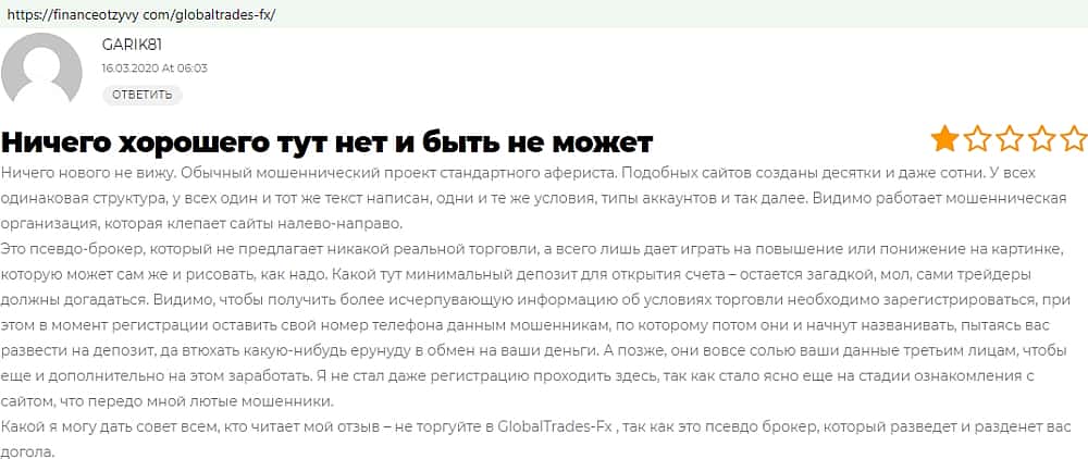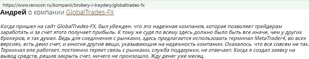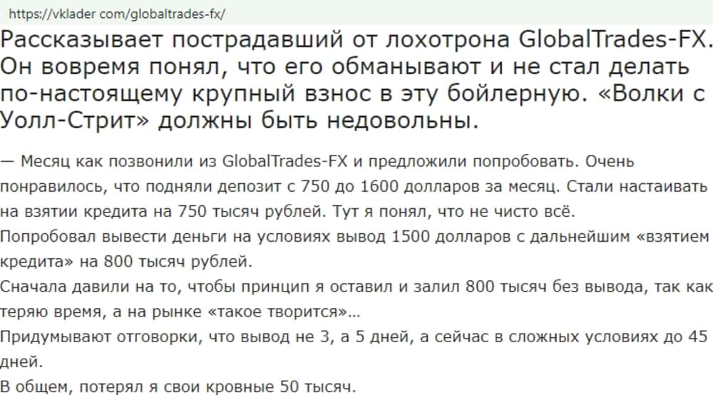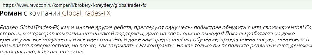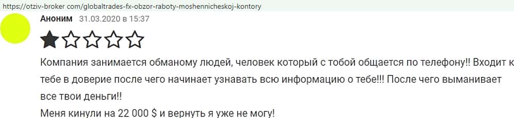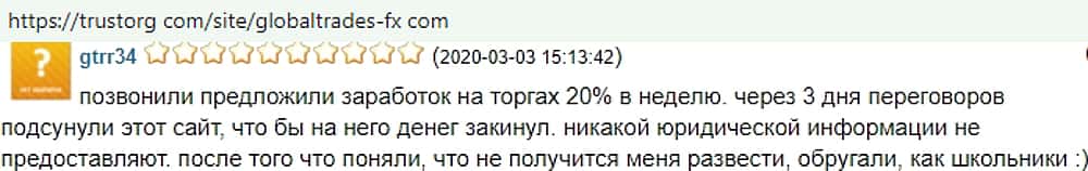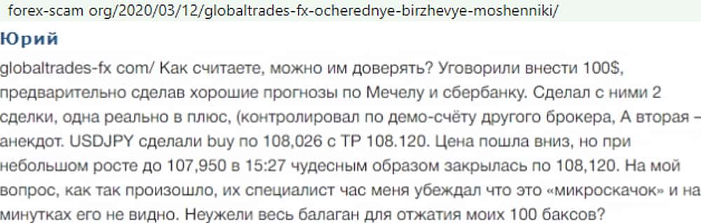 - Отзывы о фейковом форекс-брокере GlobalTrades-FX, взятые из сети Интернет