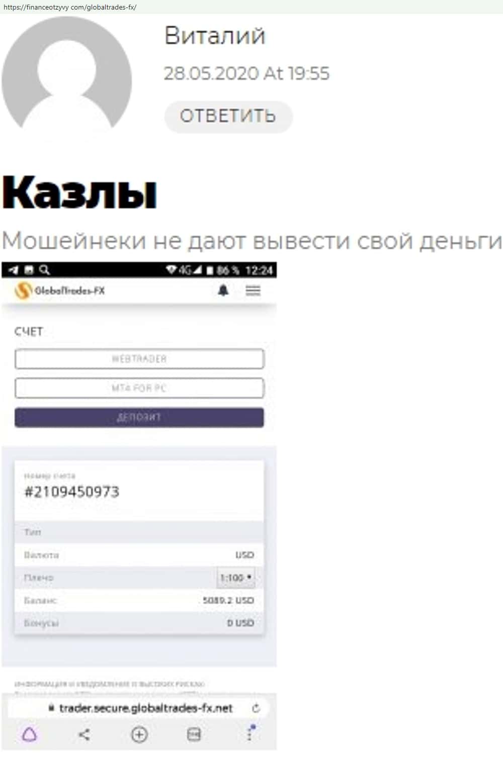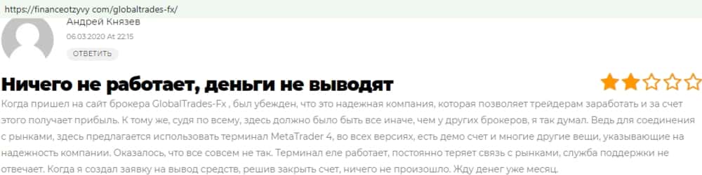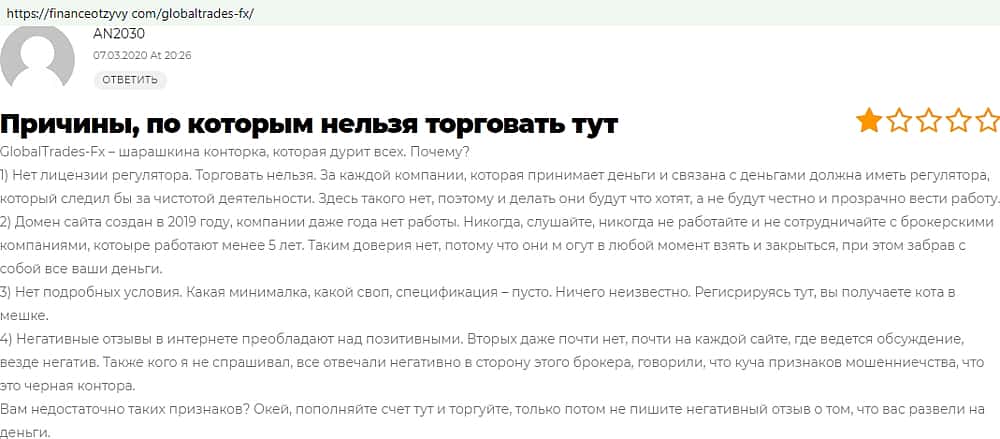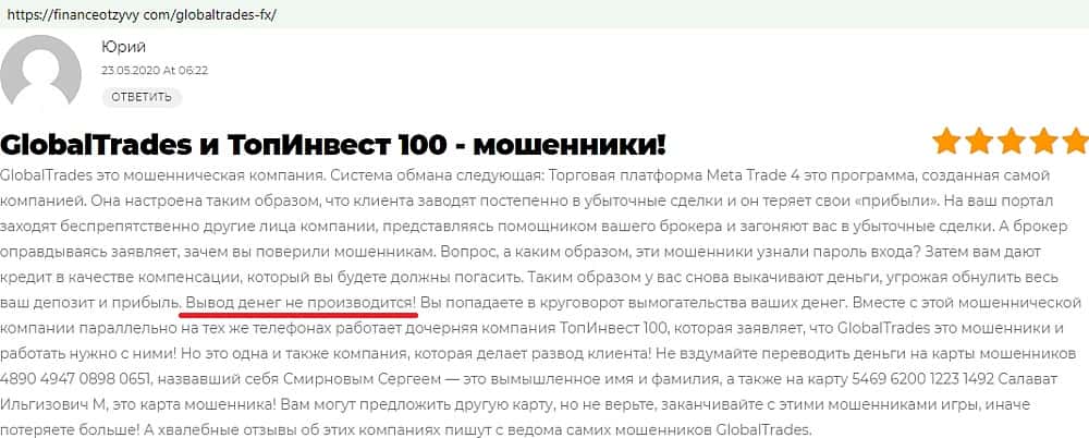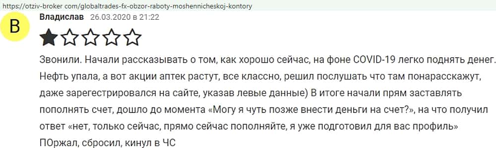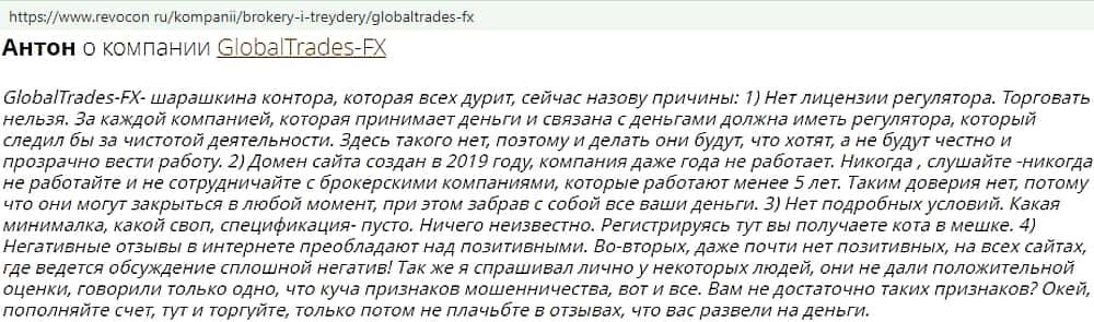- Отзывы о фейковом форекс-брокере GlobalTrades-FX, взятые из сети Интернет