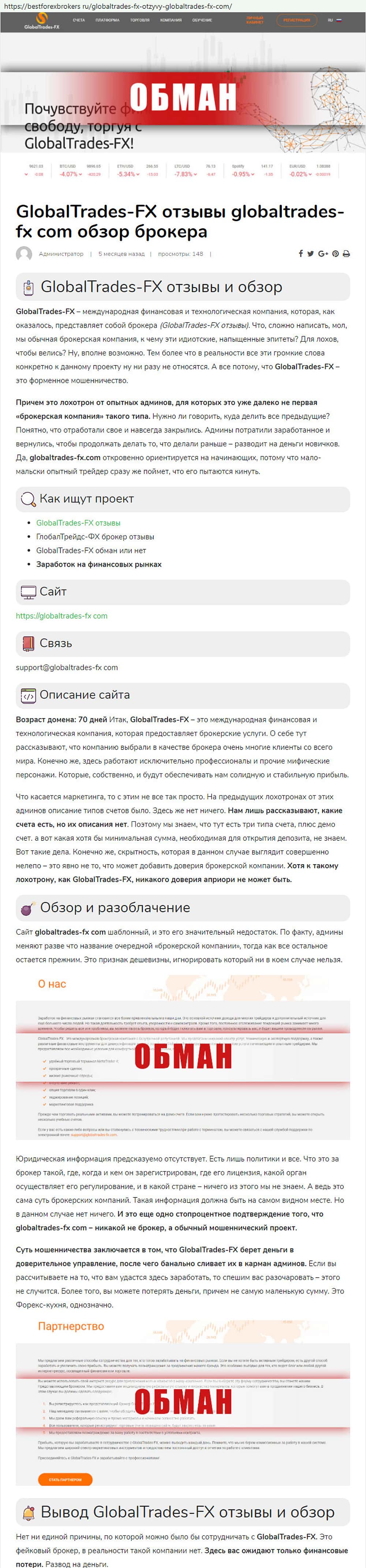 Разоблачил мошенников GlobalTrades-FX еще один веб-проект бестфорексброкерс ру. Раскатали до мельчайших нюансов жульническую схему черной форекс-кухни.