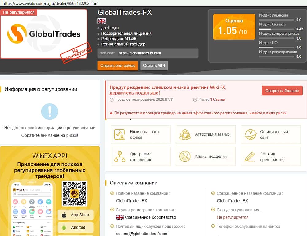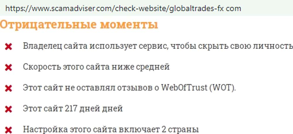 - Оффшорная безлицензионная дыра globaltrades-fx com видна пользователям сразу