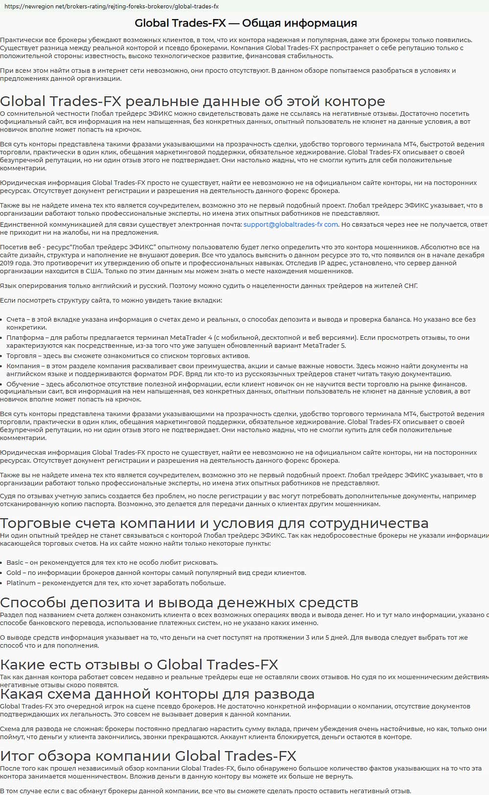 Сайт ньюрегион нет тоже внес свой вклад в борьбу с жульем Глобал Трейдес ФХ и довольно подробно описал, чем опасен внебиржевой лохотрон globaltrades-fx com.