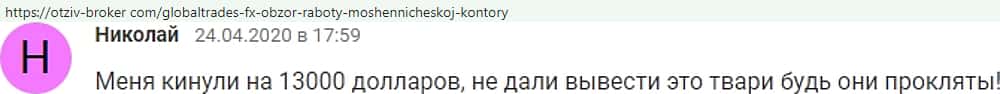 Отзывы о фейковом форекс-брокере GlobalTrades-FX, взятые из сети Интернет