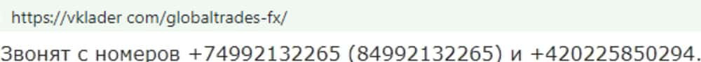 Несмотря на то, что на подвальном ресурсе номеров телефонов аферюги Глобал Трейдес ФХ не указали, обнаружить их все же удалось, благодаря бдительным пользователям сети: