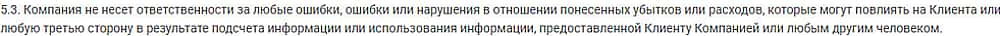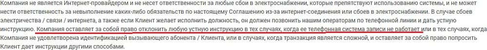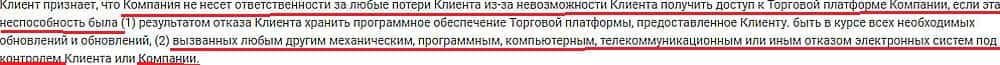 Вот еще в одном пункте, прохвосты Глобал Трейдес ФХ утверждают, что не несут ответственность за сбой торговой псевдоплатформы, которая находится под их контролем.