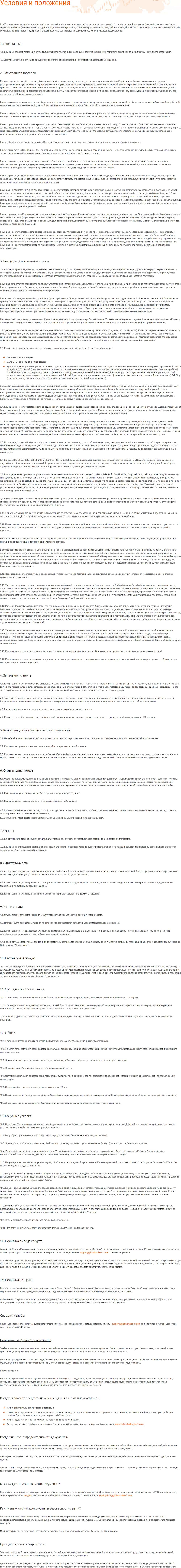 - Клиентское антисоглашение мошеннической структуры Глобал Трейдес ФХ
