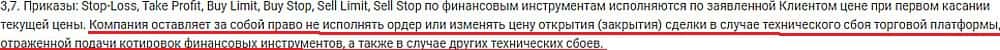 А вот пункт, в котором лжедилер GlobalTrades-FX признается, что их внебиржевая имитация - это просто кухня. Это позволяет им списывать свой мухлеж на некие задержки и ошибки.