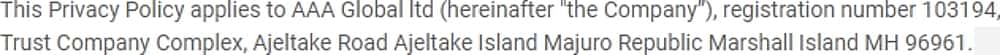 Trust Company Complex, Ajeltake Road, Ajeltake Island, Majuro, Republic of Marshall Island MH 96961.