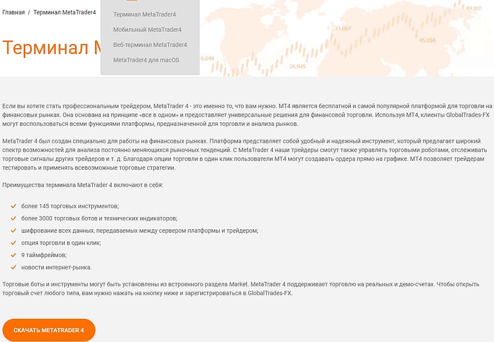 Для своих махинаций шарлатаны Глобал Трейдес ФХ используют платформу-песочницу Мета Трейдер 4, которая сделана такими же интернет-мошенниками MetaQuotes.