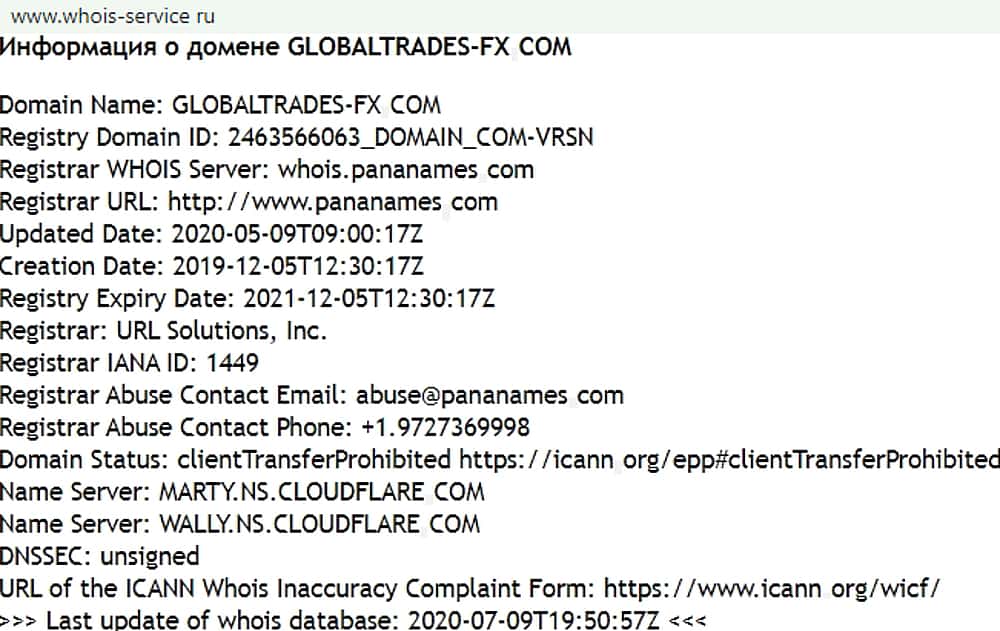 Кому принадлежит домен финансовой аферы Глобал Трейдес ФХ?