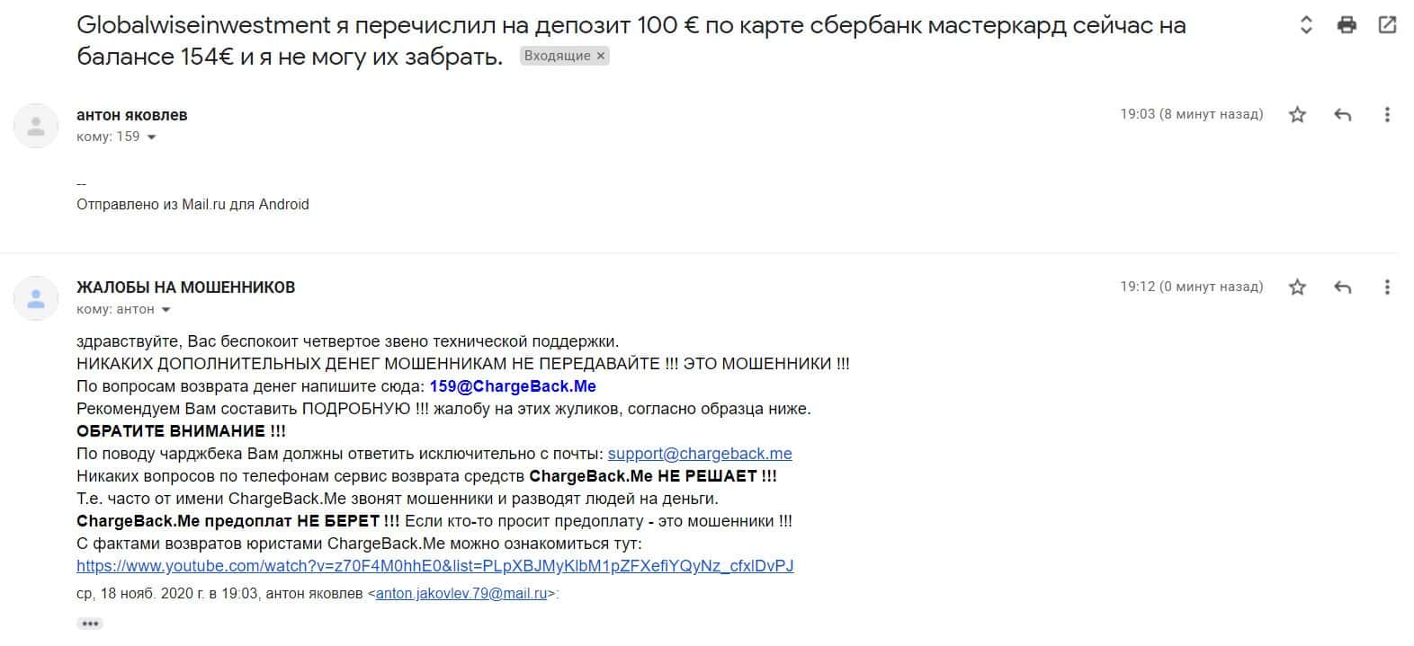 Жалоба на аферистов в лице псевдоброкера GlobalWiseInvestment